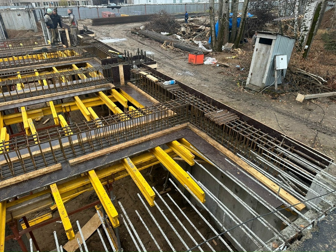 Шоссе Космонавтов — работы по подготовке фундаментной плиты объемом 600 м³